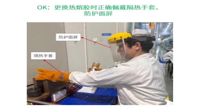 根據(jù)企業(yè)需求,識別安全作業(yè)時是否違規(guī)未穿戴防護(hù)裝置現(xiàn)存問題點:更換熱熔膠時,人員有時未按規(guī)范操作,易發(fā)生安全隱患,需現(xiàn)場語音提示并將該事件記錄解決方案:攝像機(jī)部署在工位上,識別人員手部有無佩戴隔熱手套,頭部有無佩戴防護(hù)面罩,若無觸發(fā)告警
